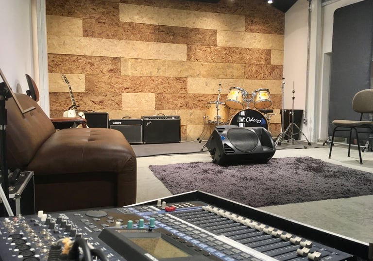 Gravações e ensaios em um ambiente acolhedor e profissional.